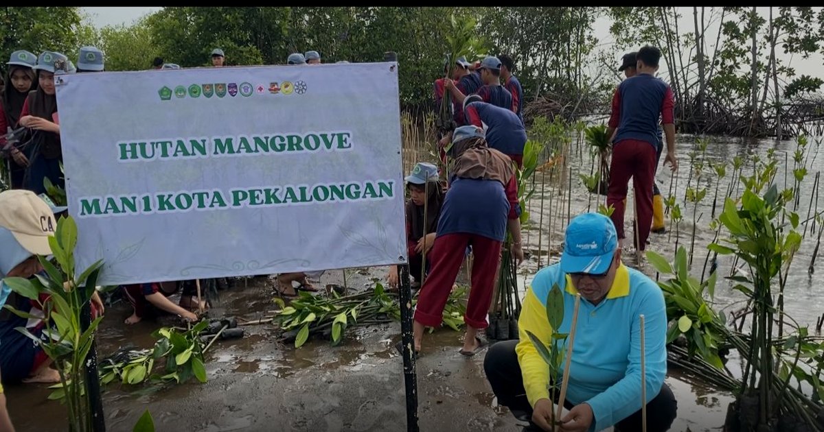 Teras News — Puluhan siswa MAN 1 Kota Pekalongan bersama perwakilan organisasi madrasah menanam 1.000 bibit mangrove di kawasan pesisir Pekalongan, Sabtu (19/4/2026), sebagai respons atas ancaman abrasi yang terus menggerus garis pantai kota tersebut.